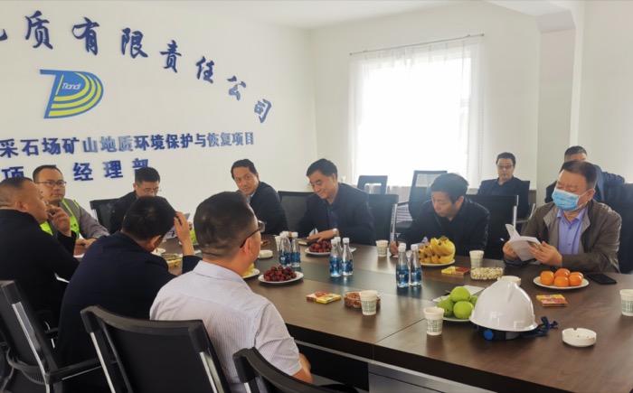 4月26日,集团公司监事会主席、工会负责人梁榆平率集团科技管理部主任杨兴科,技术管理部生产技术处副处长樊占龙一行到天地公司榆林清水工业园区废弃采石场矿山地质保护与恢复项目施工现场检查指导工作,与项目人员面对面座谈交流。天地公司党委书记、董事长、总经理姬永涛、总工程师王鑫、副总经理强林陪同检查,榆神管委会土地储备中心主任张峰参加了座谈会。