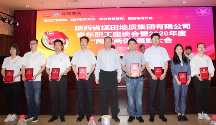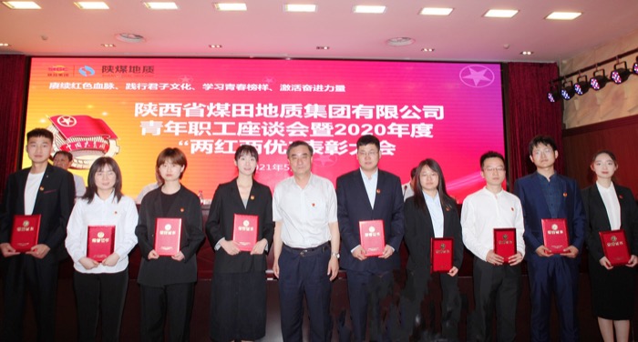 5月13日,陕煤地质集团公司召开了青年职工座谈会暨2020年度“两红两优”表彰大会,集团党委副书记、副总经理董卫峰、副总经理秦建强、纪委书记杨永柱、党委副书记梁榆平出席会议并颁奖。天地地质公司贺磊荣获“优秀团干”,崔光辉、刘可荣获“优秀共青团员”。杨朋作为优秀团员代表做交流发言。