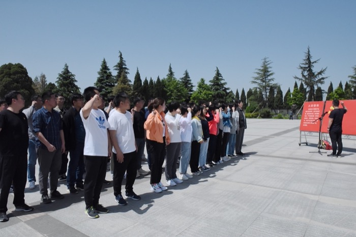 在扶眉战役烈士纪念碑前,全体人员庄严肃立,敬献花篮、行鞠躬礼、强林带领大家重温入党誓词,向扶眉战役英勇牺牲的革命先烈致以崇高的敬意。