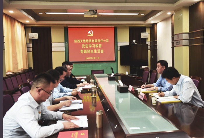 4月11日下午,天地公司召开党史学习教育专题民主生活会,陕煤地质集团监事会主席、工会负责人梁榆平到会督导并提出要求。陕煤地质集团第一督导组成员、党委工作部副主任(主持工作)李岳鹏、公司党委书记、董事长、总经理姬永涛及班子成员参会。